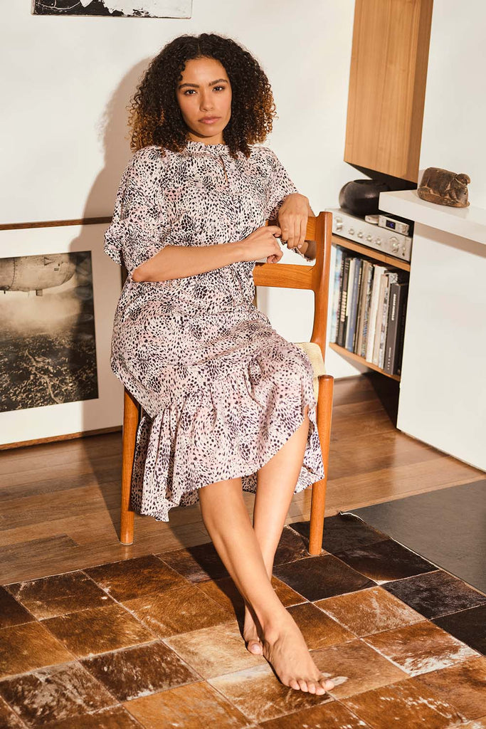 Animal Print Pephem Midi Dress