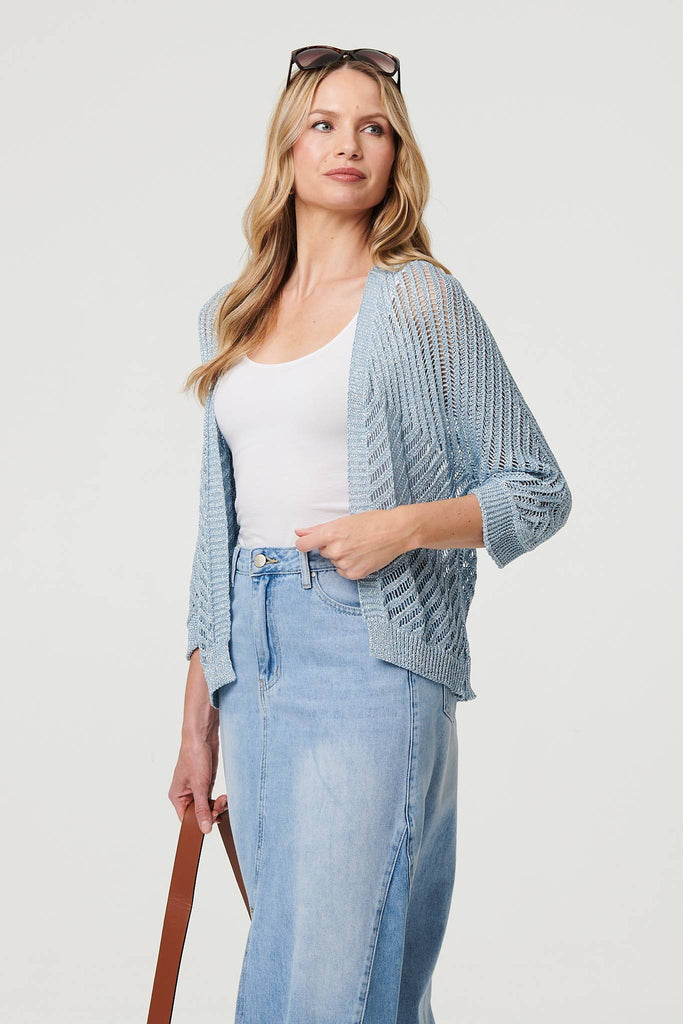 Sheer Mesh Texture 3/4 Sleeve Cardigan