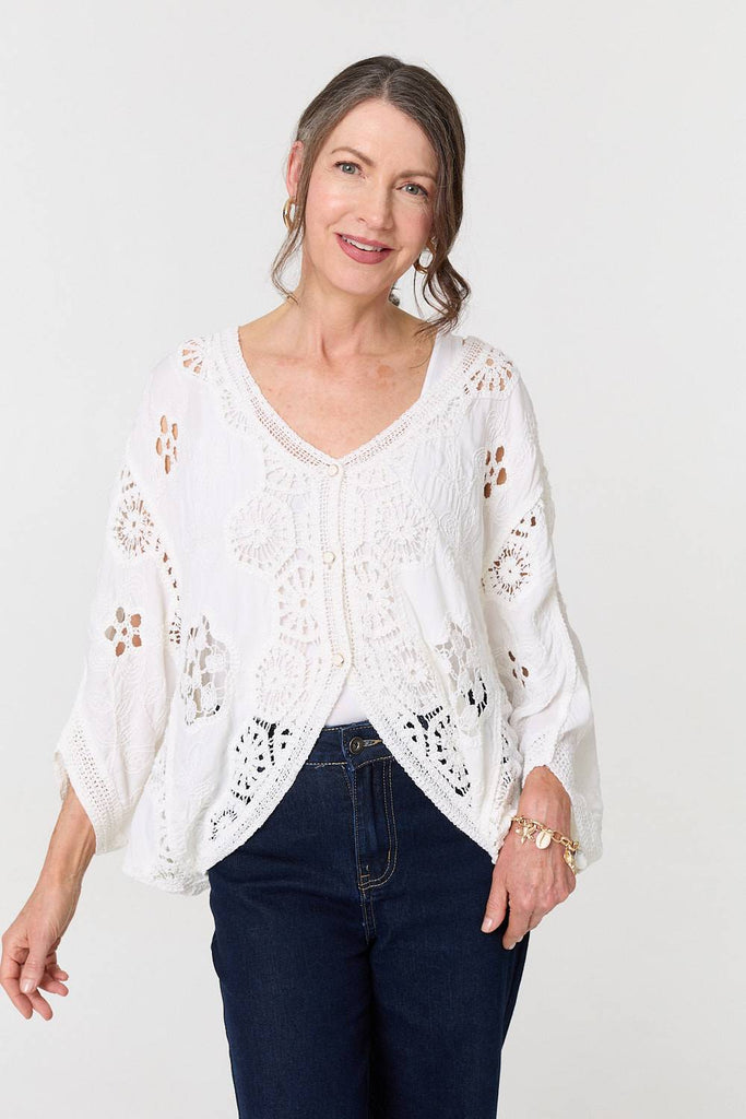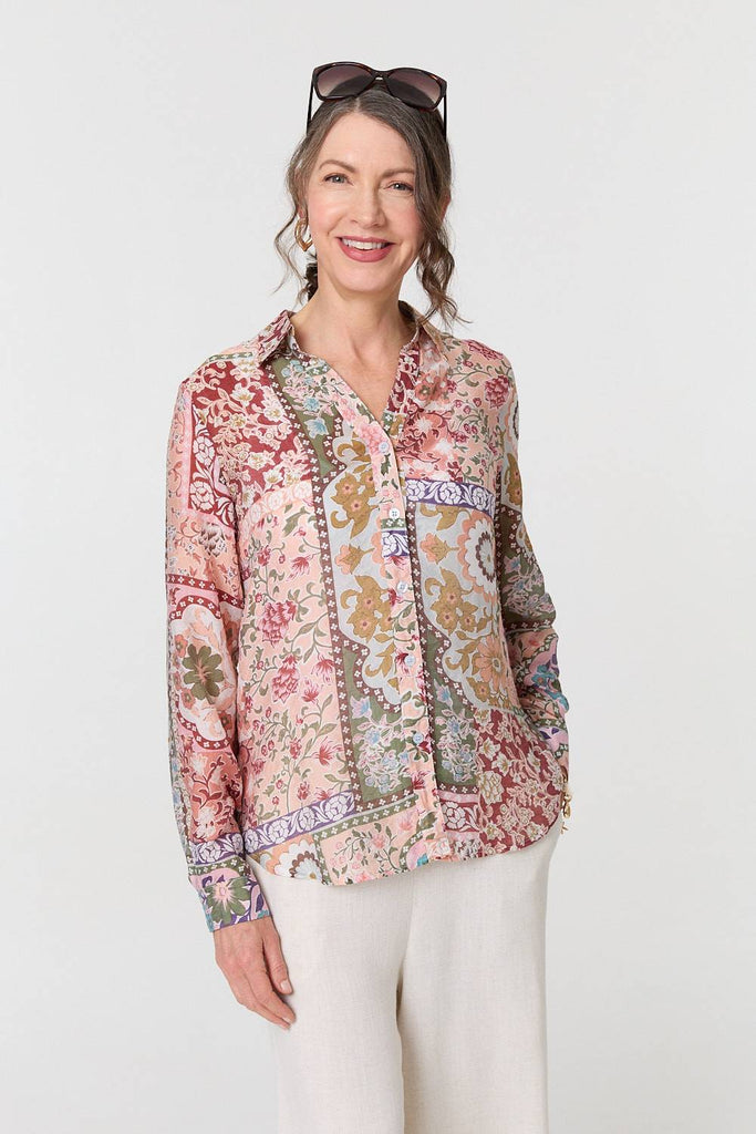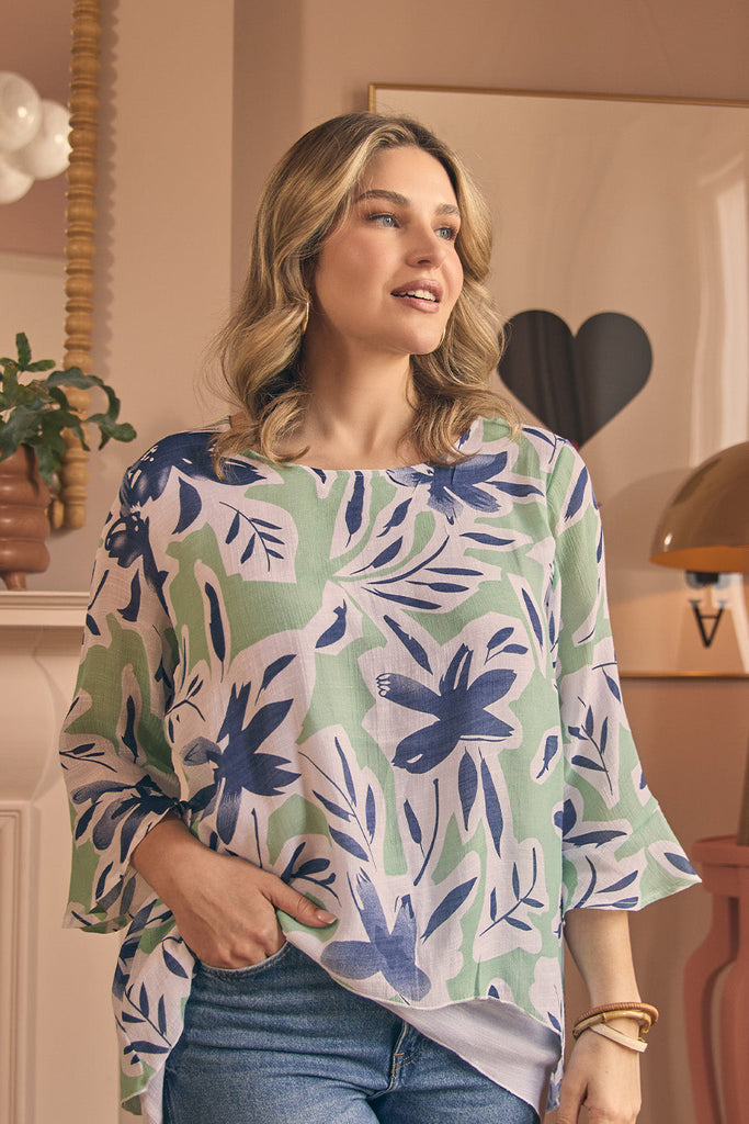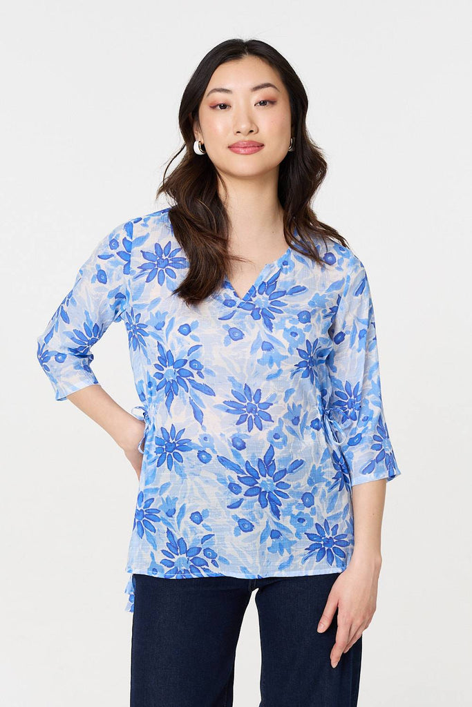 Floral 3/4 Flared Sleeve Relaxed Blouse