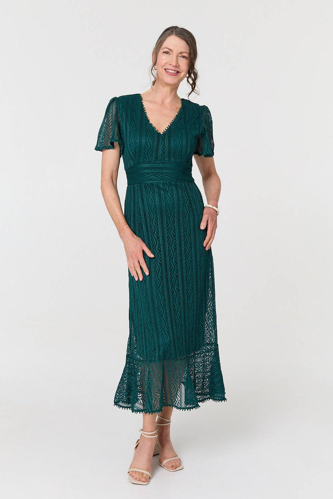 Floral Lace Tiered 3/4 Sleeve Maxi Dress