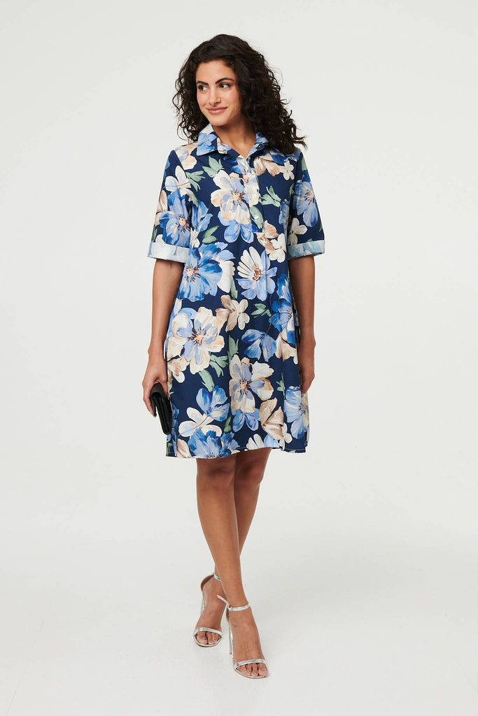 Floral Oversized Knee Length Shirt Dress