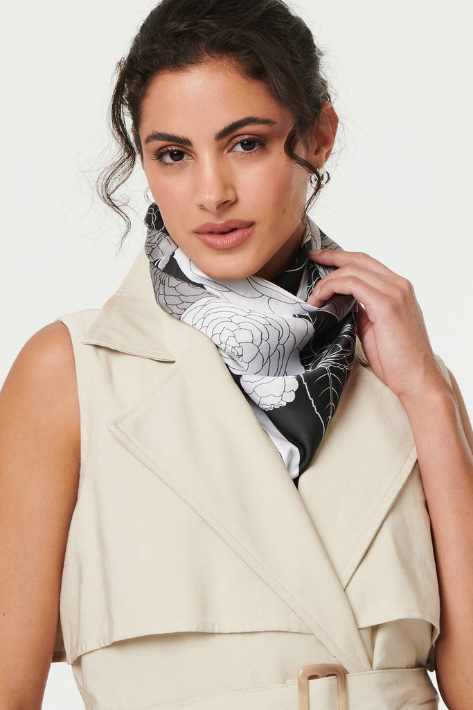 Floral Border Print Satin Square Scarf