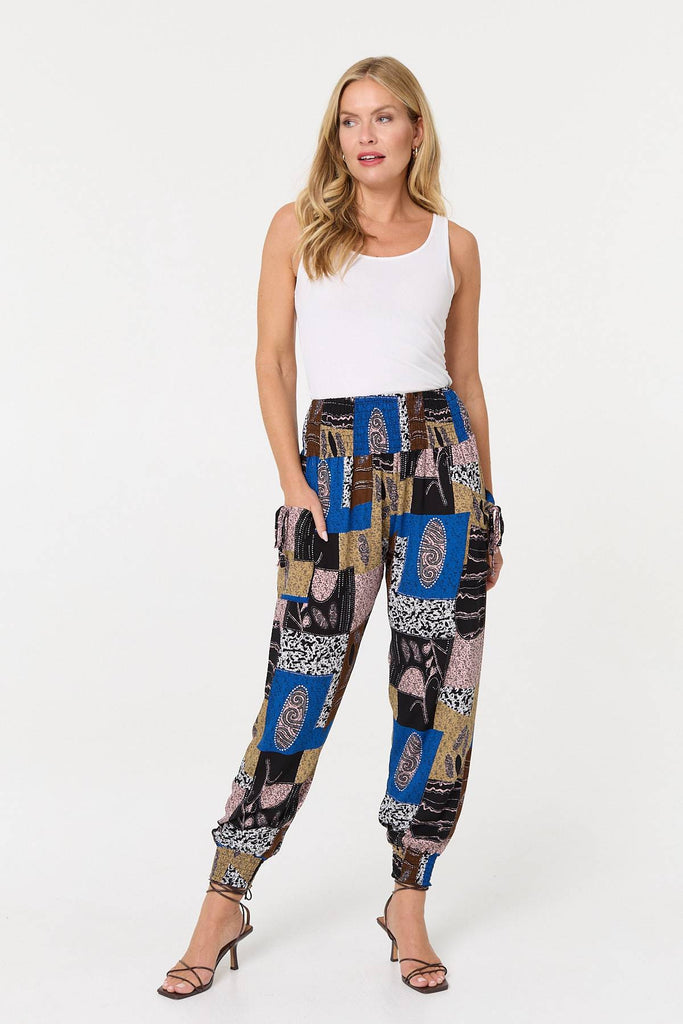 Abstract 3/4 Sleeve Curve Hem Blouse