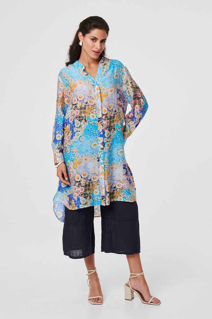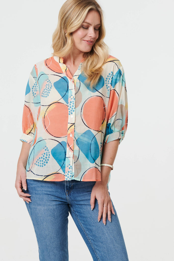 Floral Shirred 3/4 Sleeve V-Neck Blouse