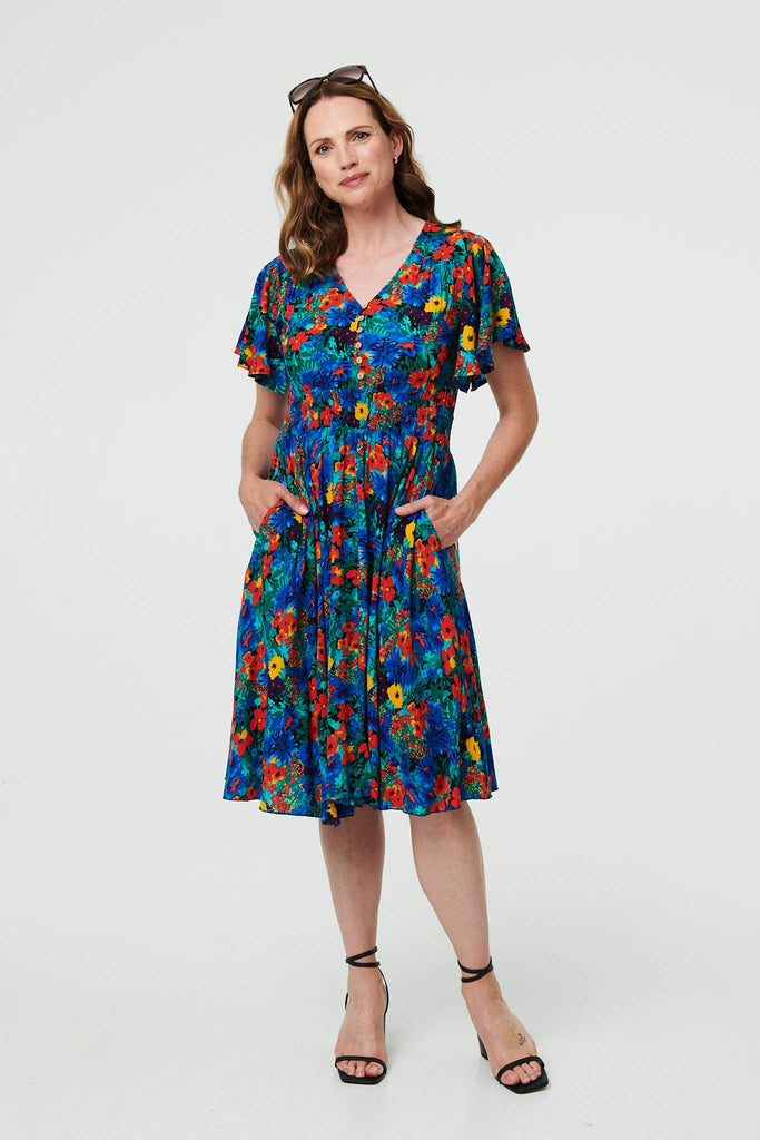 Ikat Print 1/2 Sleeve Wrap Midi Dress