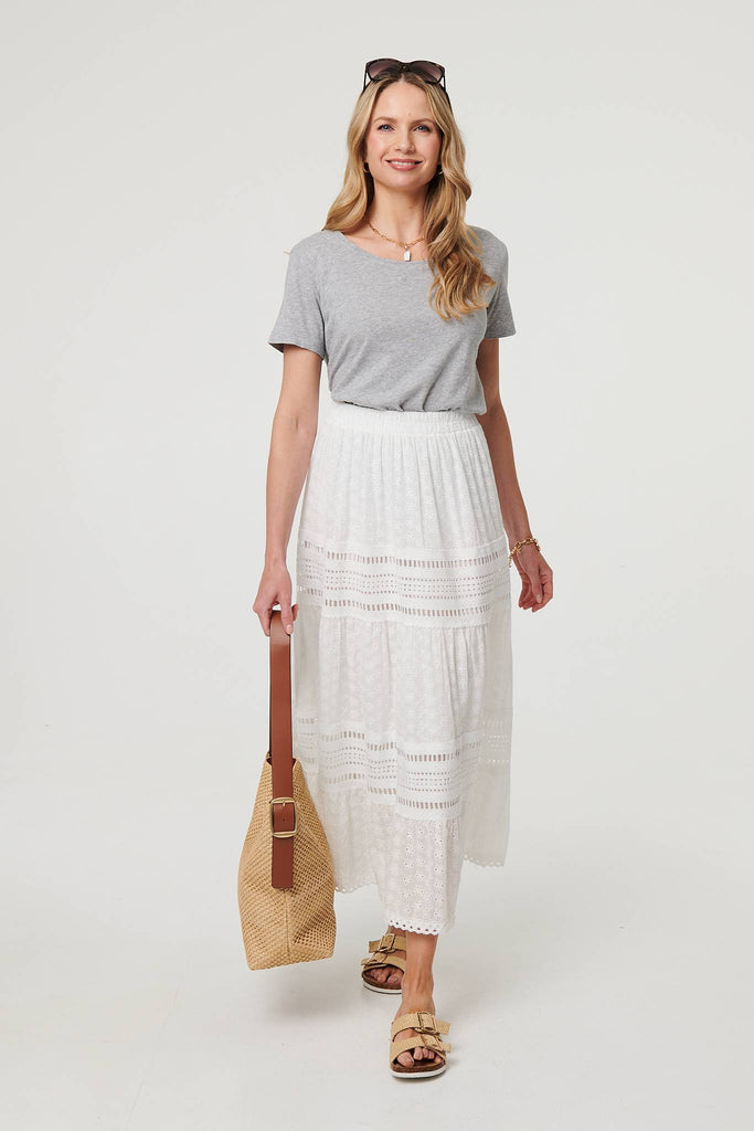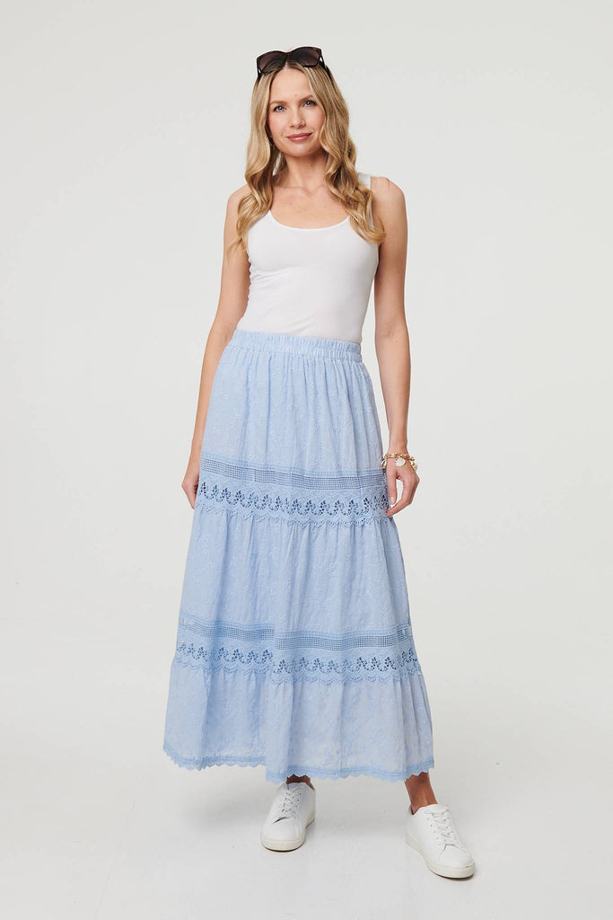 Embroidered High Waist Tiered Maxi Skirt