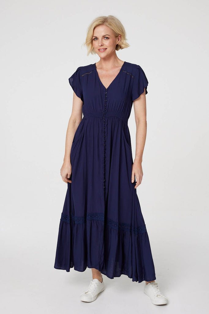 Ikat Print 1/2 Flared Sleeve Midi Dress